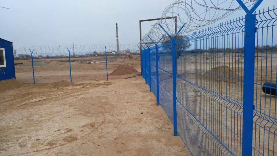 Для изготовления ограждений для производственных зон используется оцинкованная проволока с дальнейшим формированием 3D секций. Этот вариант лучше, чем классическая 2D сетка. Готовое оцинкованное изделие с ребрами жесткости покрывают нанокерамикой и отправляют в специальную камеру для дальнейшего окрашивания порошково-полимерным составом. Так получают ограждение нужного цвета. Это важно, так как помогает забору органично вписаться в окружающую среду.